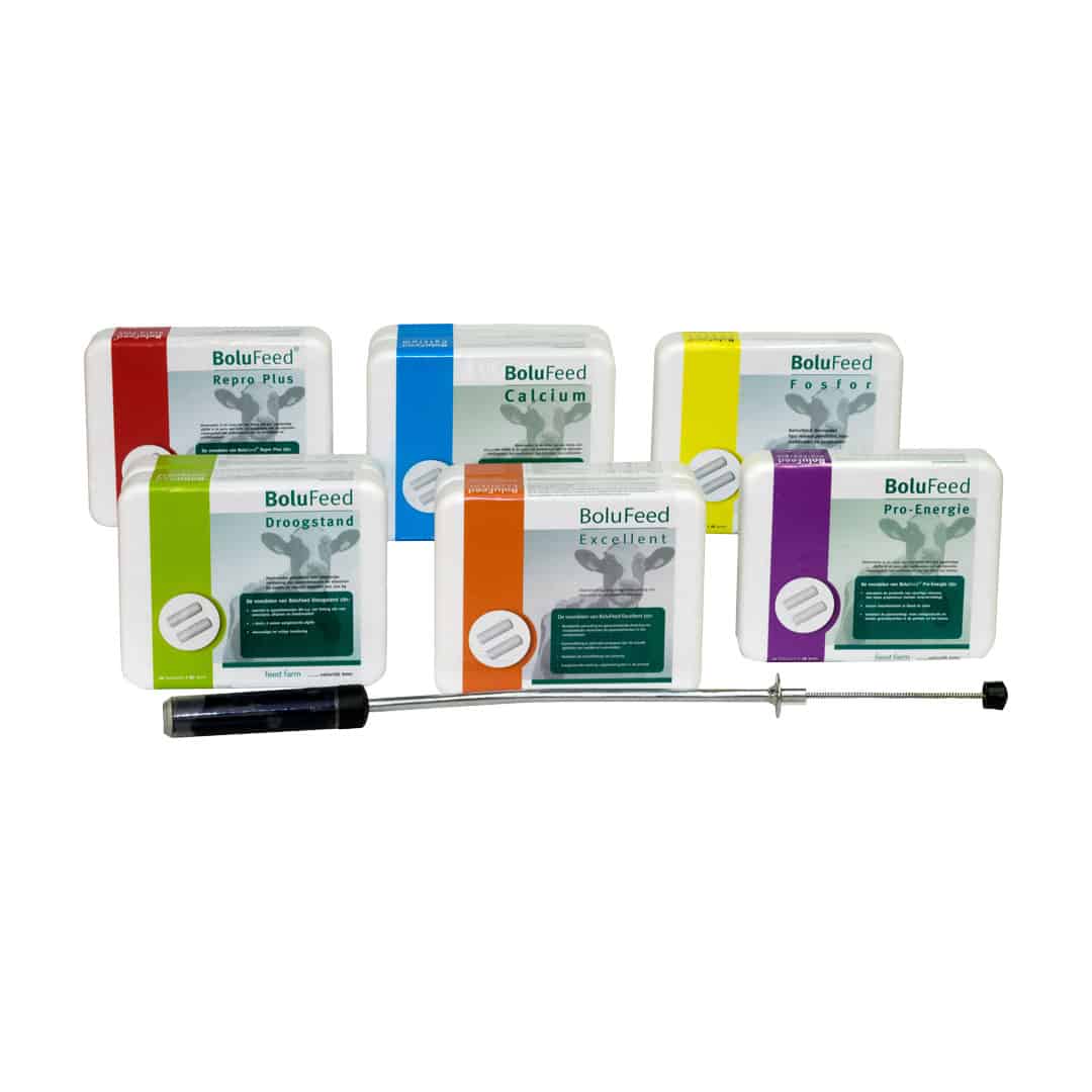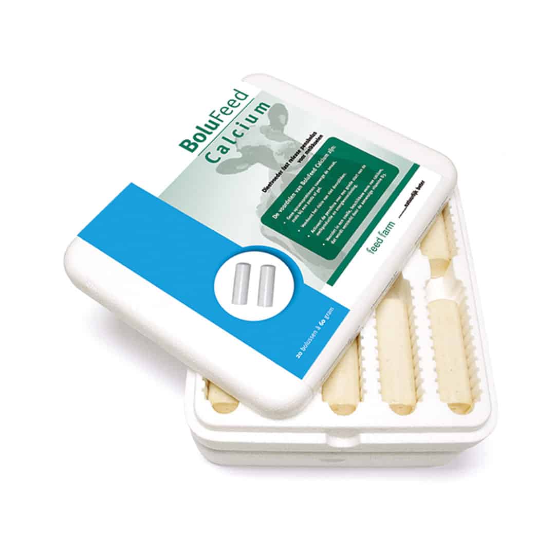 Gepatenteerd BoluFeed-product. Mineraalvoer voor melkkoeien in bolusvorm met een hoog en snel oplosbaar calciumgehalte. Voedingsdoel om het risico op melkziekte te verminderen. Beoogd gebruik: Ter verbetering van de calciumvoorziening bij koeien met een verhoogde calciumbehoefte, vooral rond het afkalven.