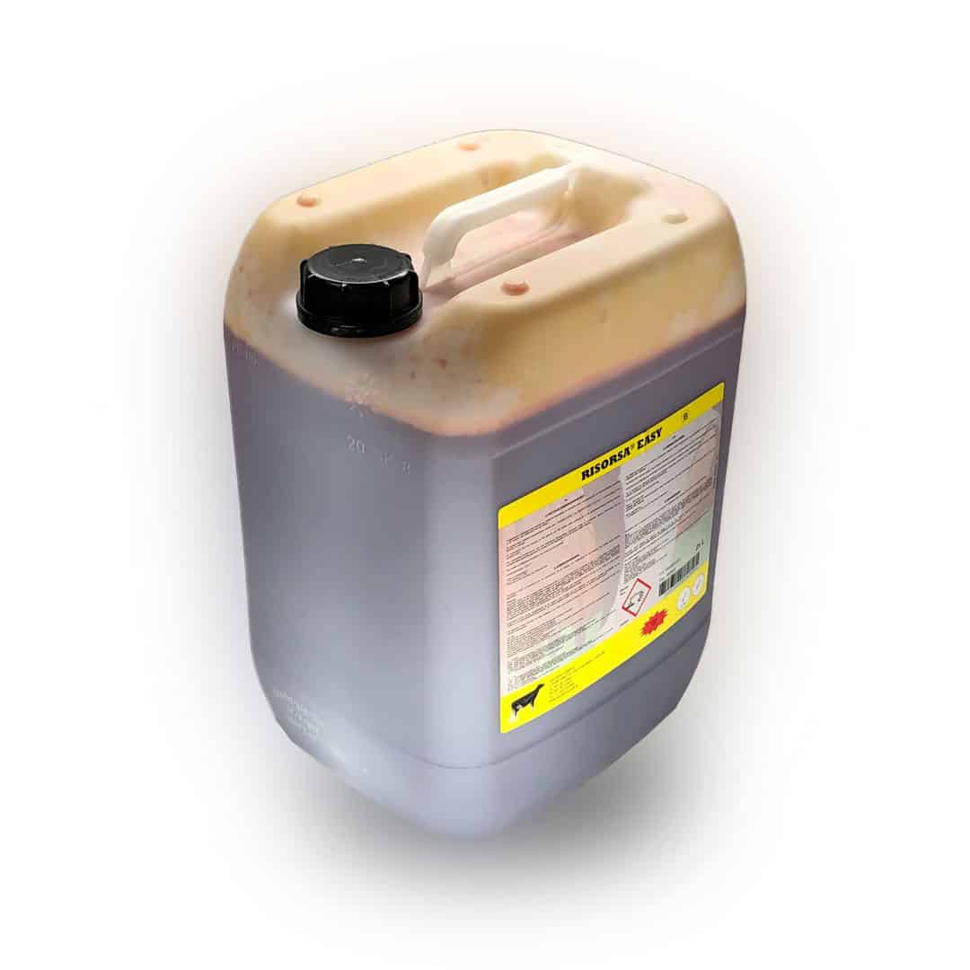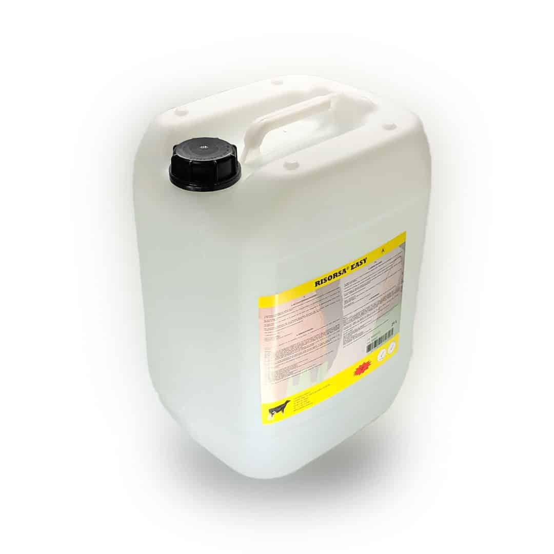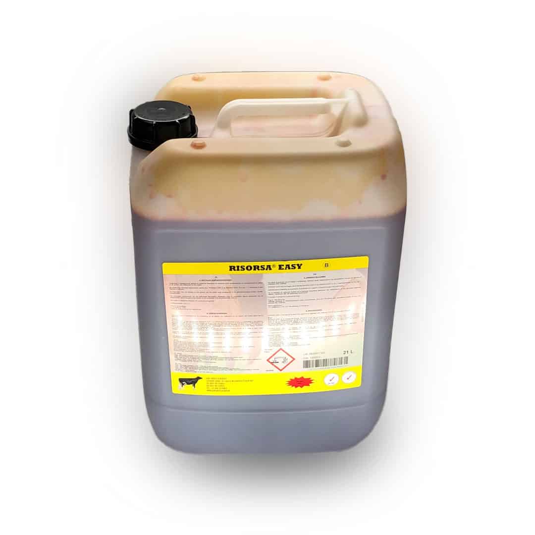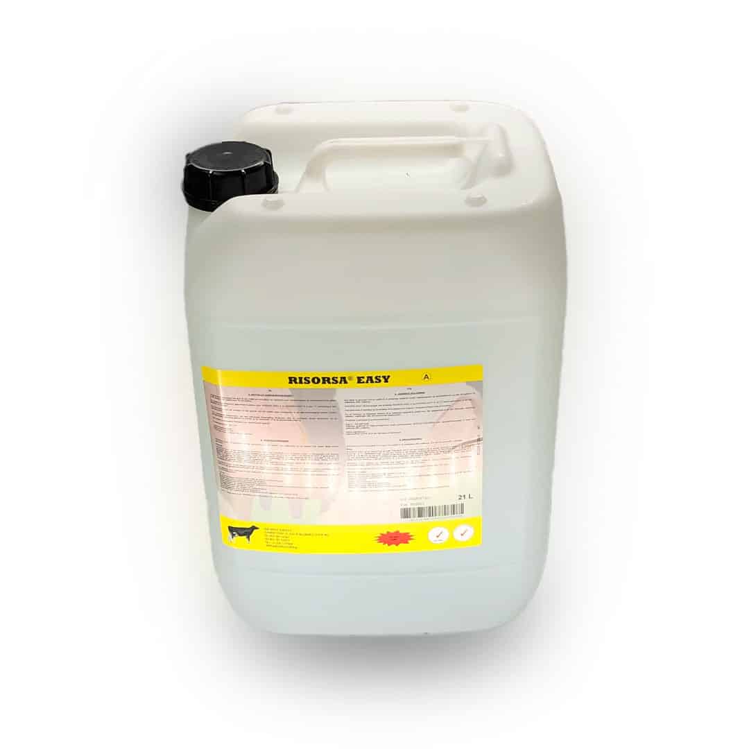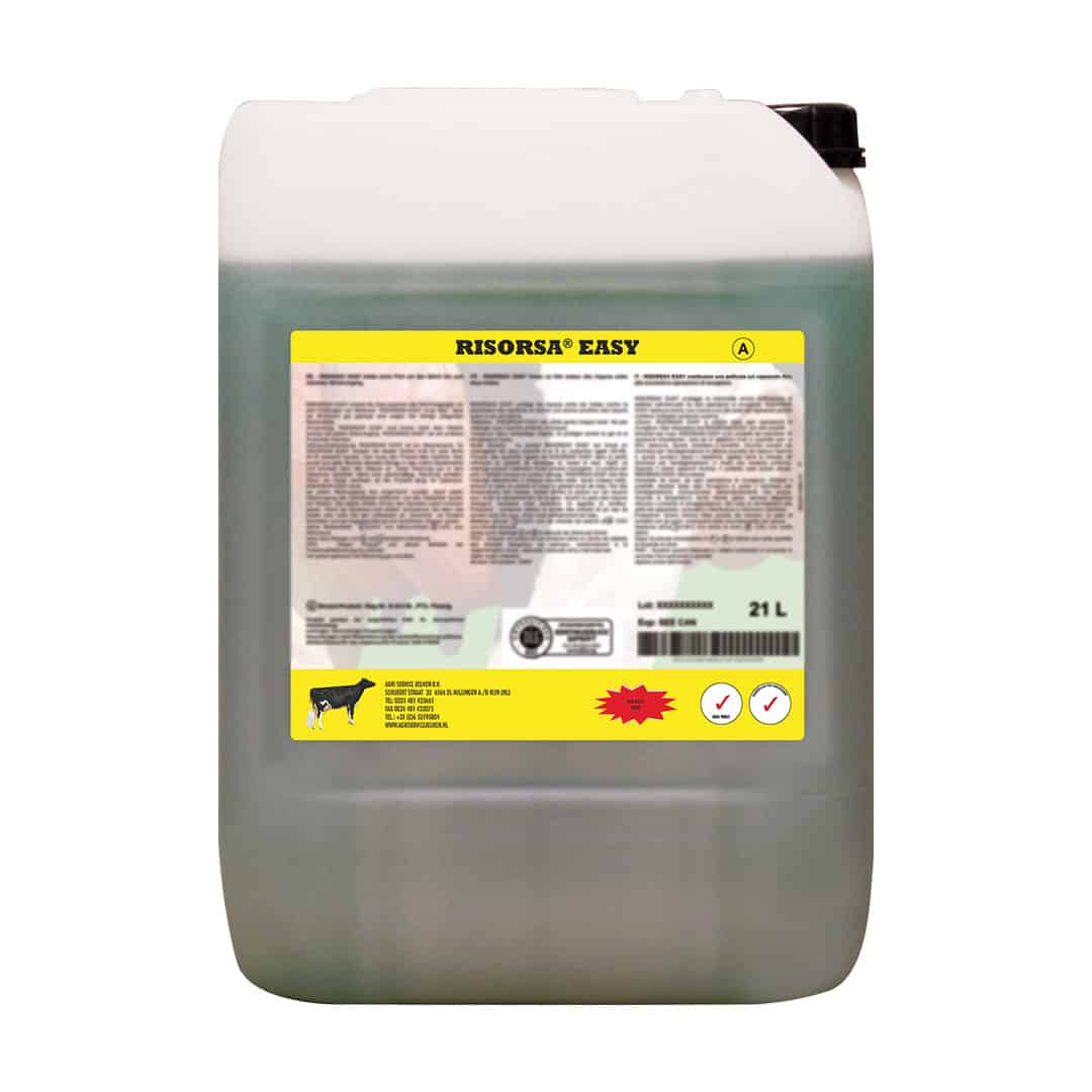 RISORSA® EASY is een tweecomponenten verzorgingsproduct dat een beschermende film vormt rond de spenen tot de volgende melkbeurt. De spenen worden verzorgd door glycerine en melkvet. RISORSA® EASY wordt geproduceerd in overeenstemming met ISO / GMP. Conserveringsmiddelen voorkomen de overdracht van ziektekiemen van koe op koe via de dompeloplossing.