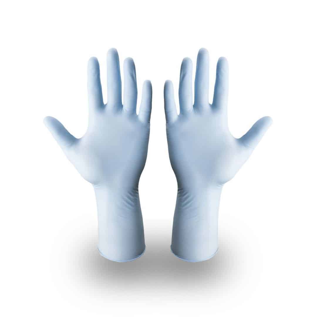 De wegwerphandschoen is een lange variant (30 cm). Pak van 100 stuks. De handschoenen kunnen met beide handen worden gedragen en zijn ondoordringbaar voor micro-organismen. Ze zijn gemaakt van 100% nitril waardoor er geen allergische reacties optreden. Poedervrij!