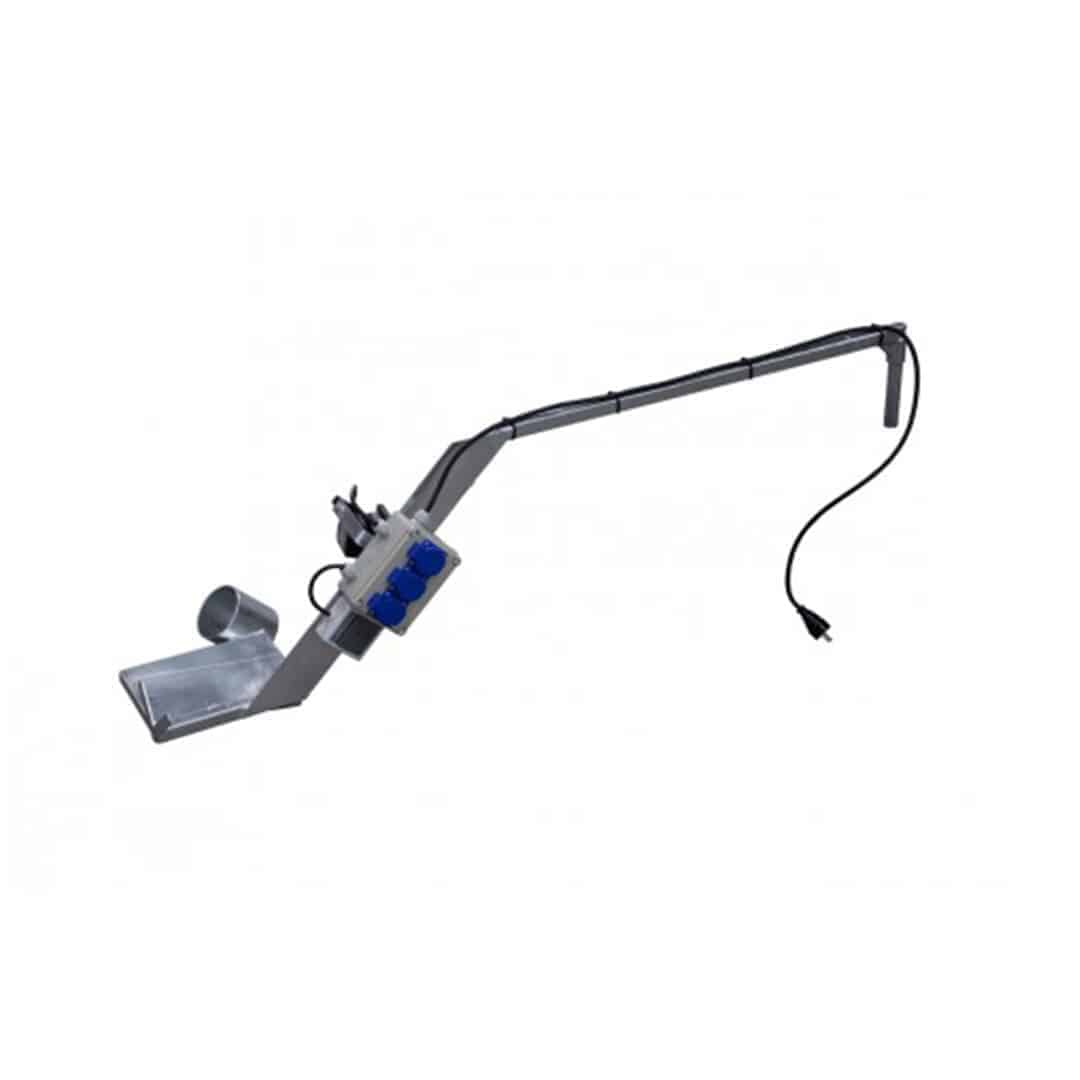 Zwenk-arm met gereedschapsbak, LED lamp, schakelaar en 3 stopcontacten. Heeft tevens geïntegreerde houder voor haakse slijper en verzorgingsmiddel (Hoof-fit gel).